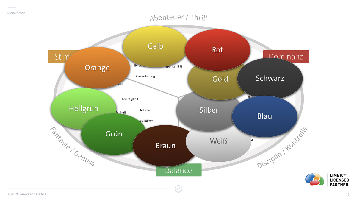 Ein wichtiger Faktor bei der Findung der richtigen Farbe ist die Zielgruppe. Diese lässt sich in Alter, Geschlecht oder auch andere Faktoren unterteilen. Die Limpic-map mit Farben ist in gutes Indiz, welche Farben zu welcher Zielgruppe am besten passen.