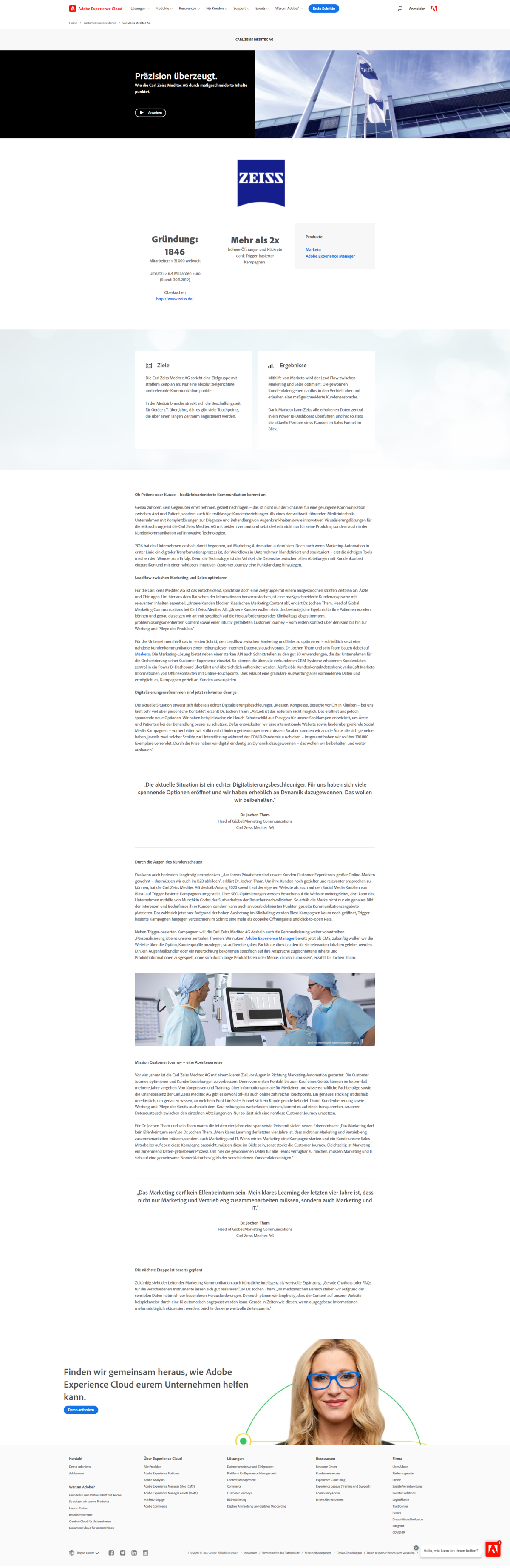 Die Success Stories der Adobe Experience Cloud sind wirklich ausführlich. Für meinen Geschmack zu ausführlich und zu textlastig. Allerdings gibt es auch hier gute Videos, in denen die echten Kunden ausführlich über Herausforderung und Lösung sprechen. Nah, echt und authentisch.